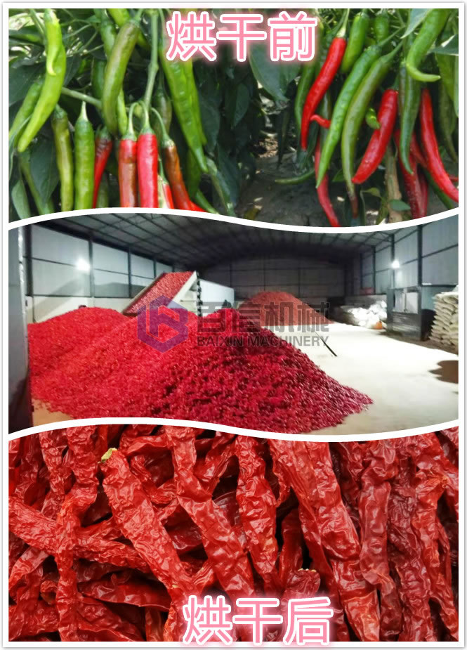 一、堆放厚度:辣椒的堆放一般20—30厘米為宜,堆放太薄,透氣性好,風阻小,雖然有利干熱變換,但熱空氣與辣椒的接觸時間相對縮短,熱利用率低。若堆放太厚,則阻力增太,熱空氣無法穿透物層,烘干效果較差。