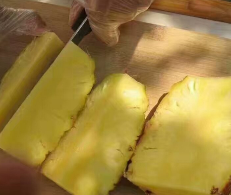 菠蘿切片的過程,烘干前期切片可以切圓片,或者半圓片都可以,主要看產品要求。