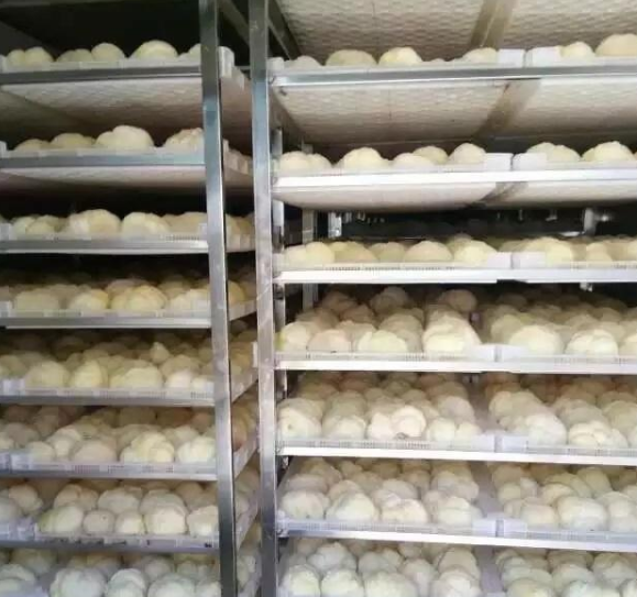 5、將均濕后的猴頭菇再送入空氣能烘干房,進行復烘,溫度以55℃-60℃為宜,時間3~4小時。初烘、復烘時間總共需12~18小時。干燥完成的猴頭菇形態飽滿,菌刺整齊,色澤淡黃色至金黃,含水量不超過12%